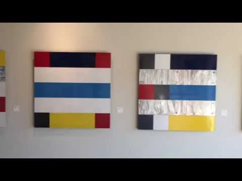 In her new show at K.OSS Contemporary Art, Mary Gillis: Metalscapes, I am delighted to introduce you to a series of her abstract geometric pieces that Gillis created using thermoset polymer on aluminum, acrylic paint on acrylic glass, stainless steel and a couple of guardrails. This unusual mixture of mediums creates a world both totally new and reflective of the past. These startling effects she creates by using acrylic on clay-coated hardboard as well as thermoset polymer on recycled guardrail. The works clearly convey the influence of the early modern art movement, De Stijl –an abstract, pared-down aesthetic with basic visual elements such as geometric forms and primary colors –but Gillis adds to them a contemporary sensibility. Her combination of reflective surfaces and thoughtful order brings the viewer a new sense of form and reflected space.